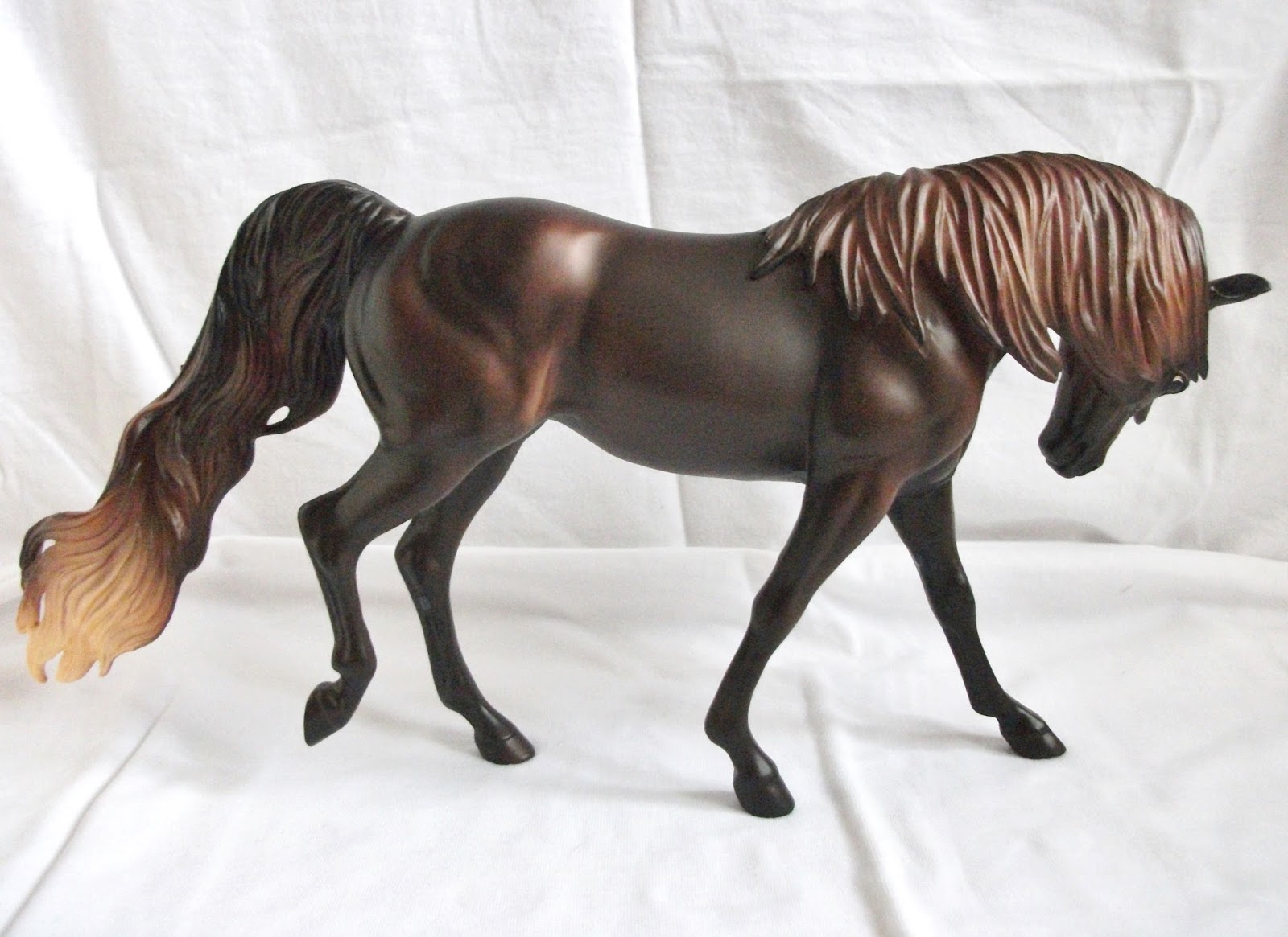 Yeah, ok, she's a bigger scale than I suggested, but in pretty much every other category Sara Moniet ticks each box. She's small for a Traditional, has long brown hair, and is sculpted in a quiet walking pose. With her head down and her eyes on the ground she looks shy, like she's desperately trying to avoid making eye contact so no one comes over and talks to her. Conformationally, she's a bit awkward (like me :) ), with a weird shoulder and legs that are too thick, but she's still attractive in her own way. And she's lifting her hind leg very carefully, as though she's being ultra precise over exactly where she places every hoof.